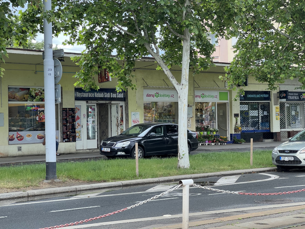 Parkování na chodníku, když je dostatek volných míst na přilehlé komunikací. Auto stalo 6.6. odpoledne před provozovnou rychlého občerstvení.