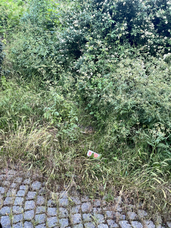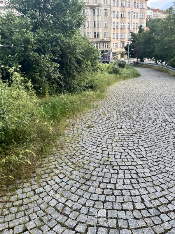 Obrovské množství odpadků po okrajích celé cesty až ke schodem na Vítkov. Taky se hned vedle cesty nachází mrtvý zajíc.