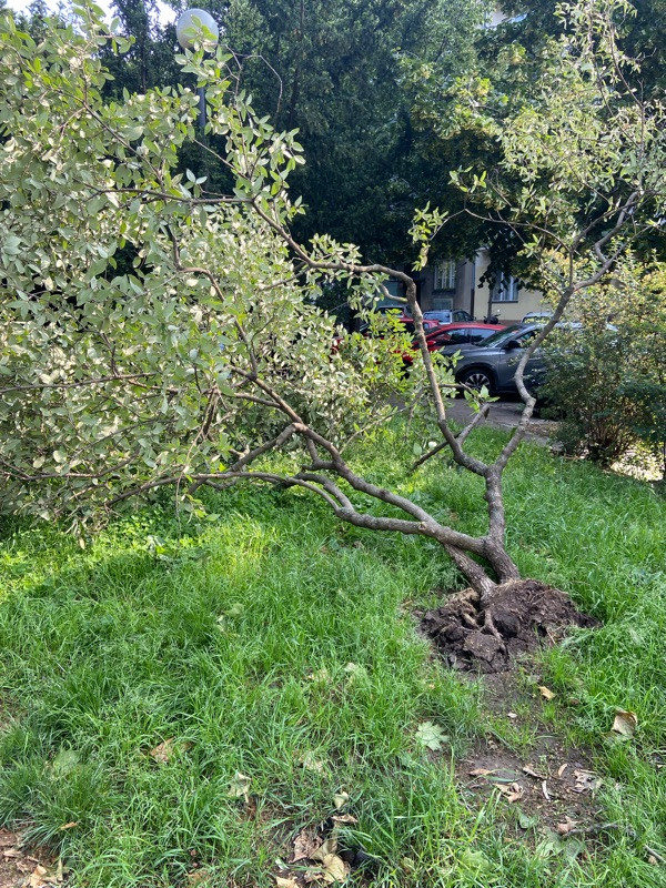 Nejspíš vítr vyvrátil stromek a treba by šel ještě prezasadit.