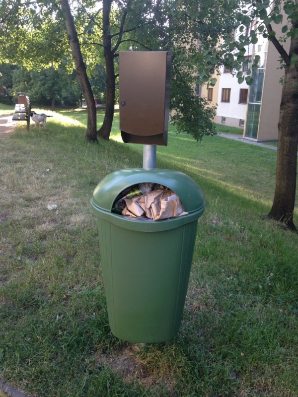 Děkujeme za vysypání koše, ale papírové pytlíky na psí exkrementy nebyly doplněny.