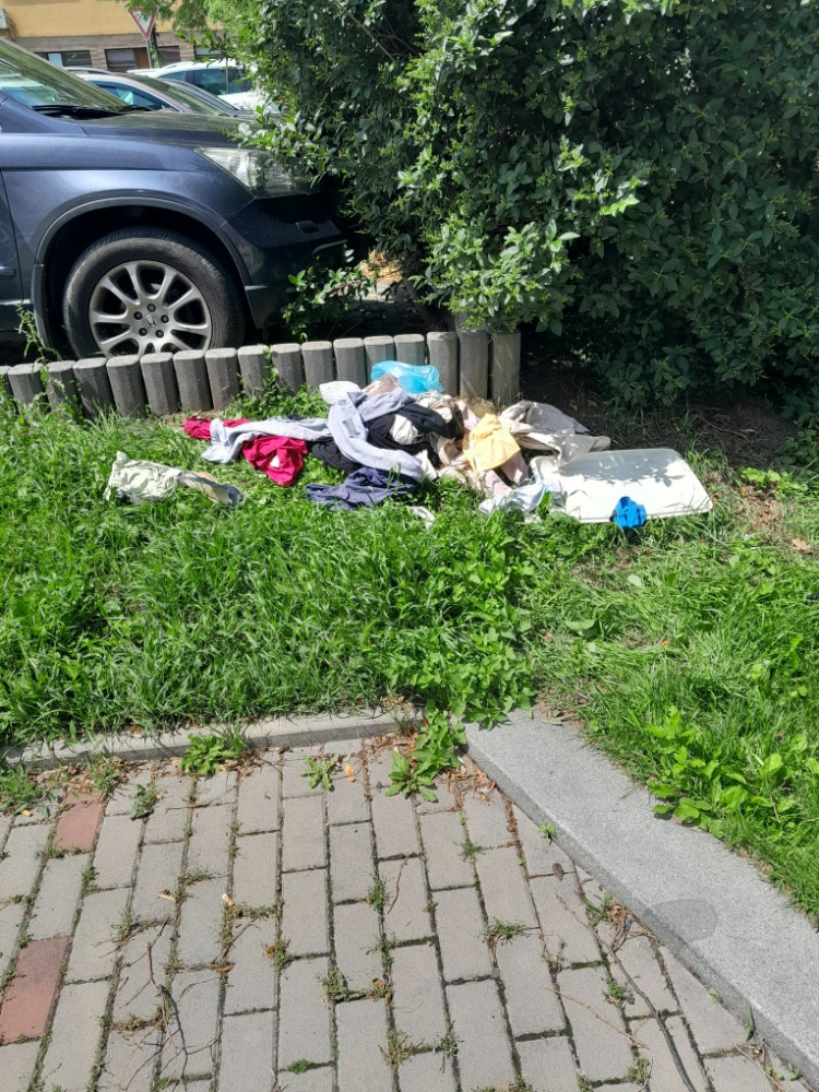 dobrý den, prosím odklidit u polikliniky Olšanská u parkoviště z ulice Pitterova hromadu hadrů a proti u chodniku 3 černé pytle.