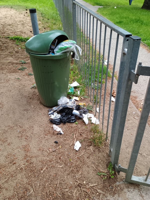 Vysypane odpadky z kosa, vcetne psich exkrementu na detskem hristi V jezerach.