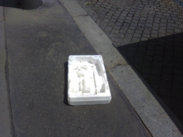 Deska polystyrénu na chodníku.
