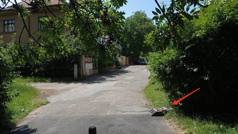 U spodního konce ulice K Vrcholu se nachází zapomenutý podstavec po přenosné DZ.