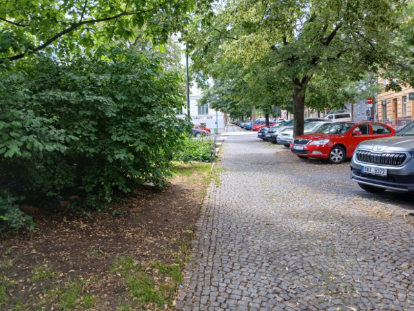 Ložnice v kerich vedle DH pro větší děti na Žižkově náměstí, viděno z Bořivojovy ulice.