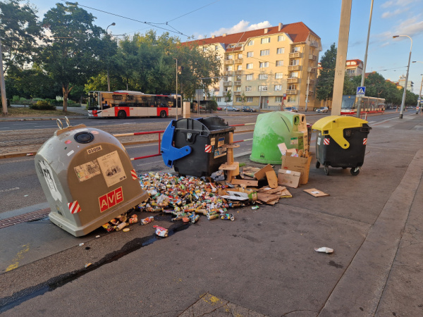 děkujeme za Váš podnět. Předali jsme ho organizaci AVE CZ, která kontejnery na tříděný odpad vyváží a současně odpovídá za pořádek okolo kontejnerů a za jejich funkčnost.