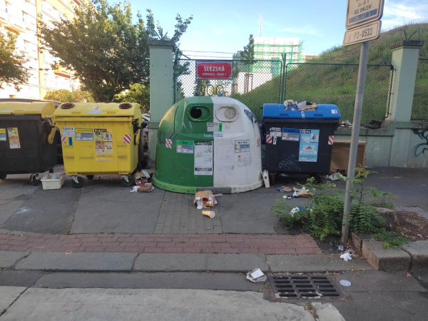 děkujeme za Váš podnět. Předali jsme ho organizaci AVE CZ, která kontejnery na tříděný odpad vyváží a za pořádek kolem kontejnerů odpovídá. Úklid jednotlivých stanovišť kontejnerů na tříděný odpad probíhá pravidelně podle stanoveného harmonogramu (od 6:00 do do 22:00 každý den včetně sobot a nedělí).