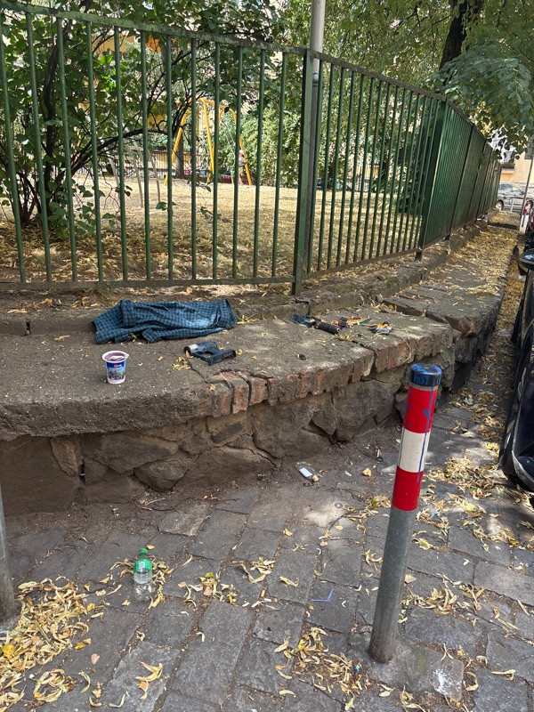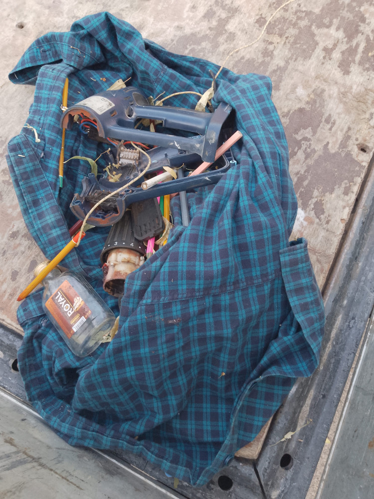 Rozhazeny bordel vcetne sklenene lahve a elektrosoucastek. Dekuji!