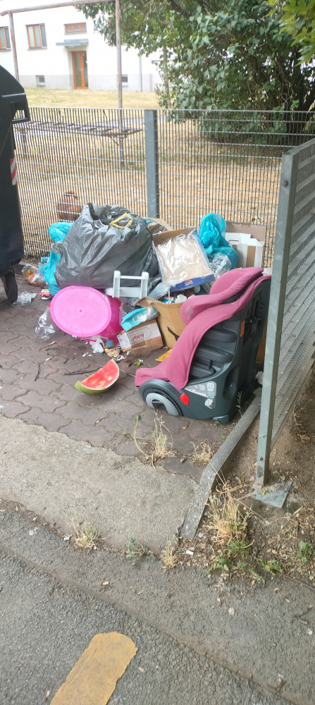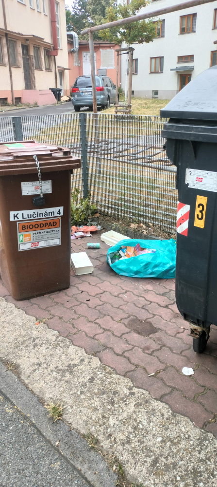 za pořádek okolo popelnic/kontejnerů je odpovědný jejich vlastník. V tomto případě se jedná o SVJ a úklid je mimo naši působnost. Děkujeme za pochopení.