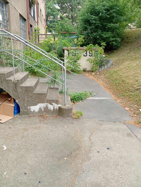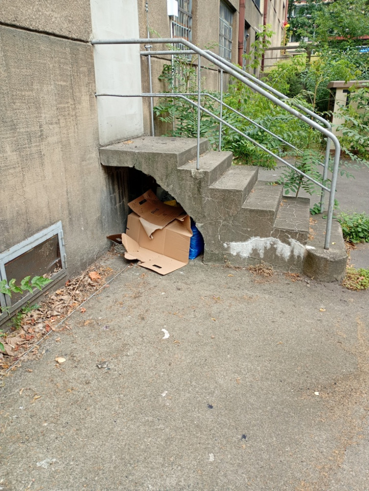 2×hnizdo bezdomovců mezi bloky vedle Lidlu Hertigova