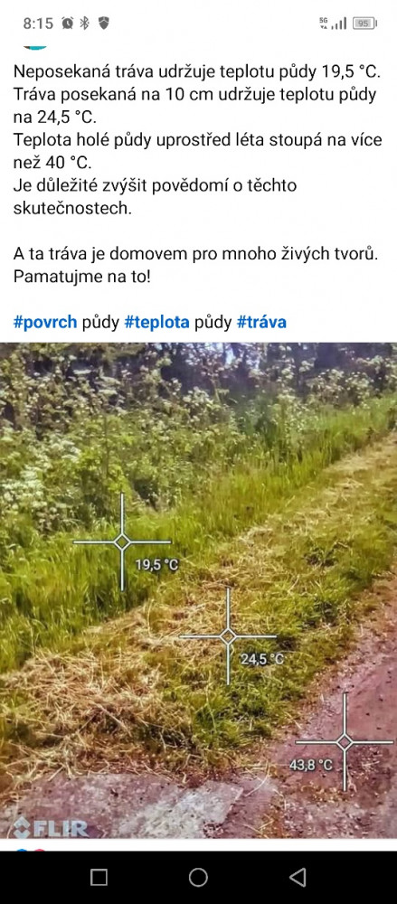nevím proč se to muselo posekat před těma vedry, ale byl to špatný krok, akorát si někdo. nahrabal peníze za posekani, teďka tu máme akorát spálenou suchou trávu kdyby se to nechalo delasi tak by i teplota ve vedrech bílá tu lepší a zároveň i pro hmyz.nebo když to posekate tak by bylo dobrý to aspoň trochu kropit takhle místo zeleného vnitrobloku máme Saharu, tráva která se z toho nevzpamatuje až napristi rok, chtělo by to trochu u toho myslet a nedělat na krátko za každou cenu s pozdravem Martin Vaníček