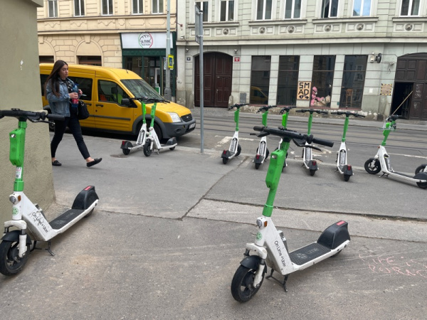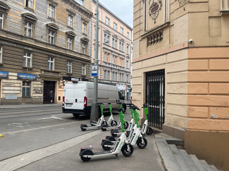 Pravidelná blokáda množstvím elektrokoloběžek.