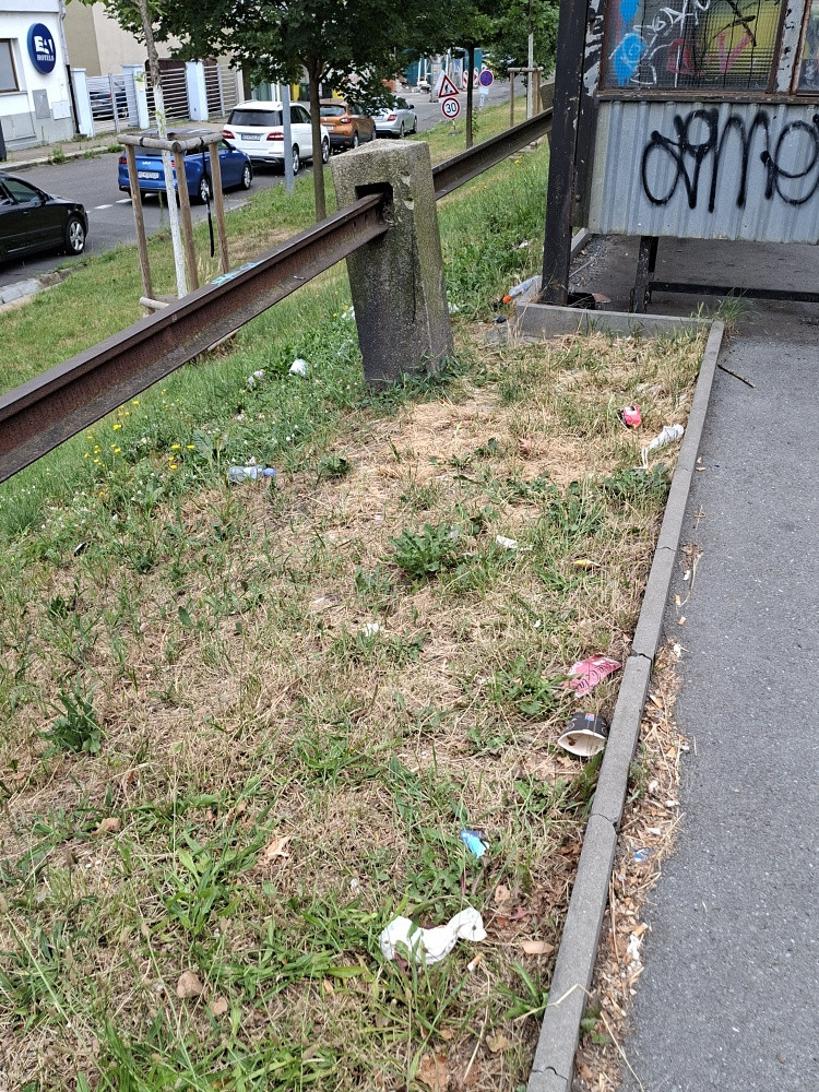 Poházené odpadky kolem autobusové zastávky