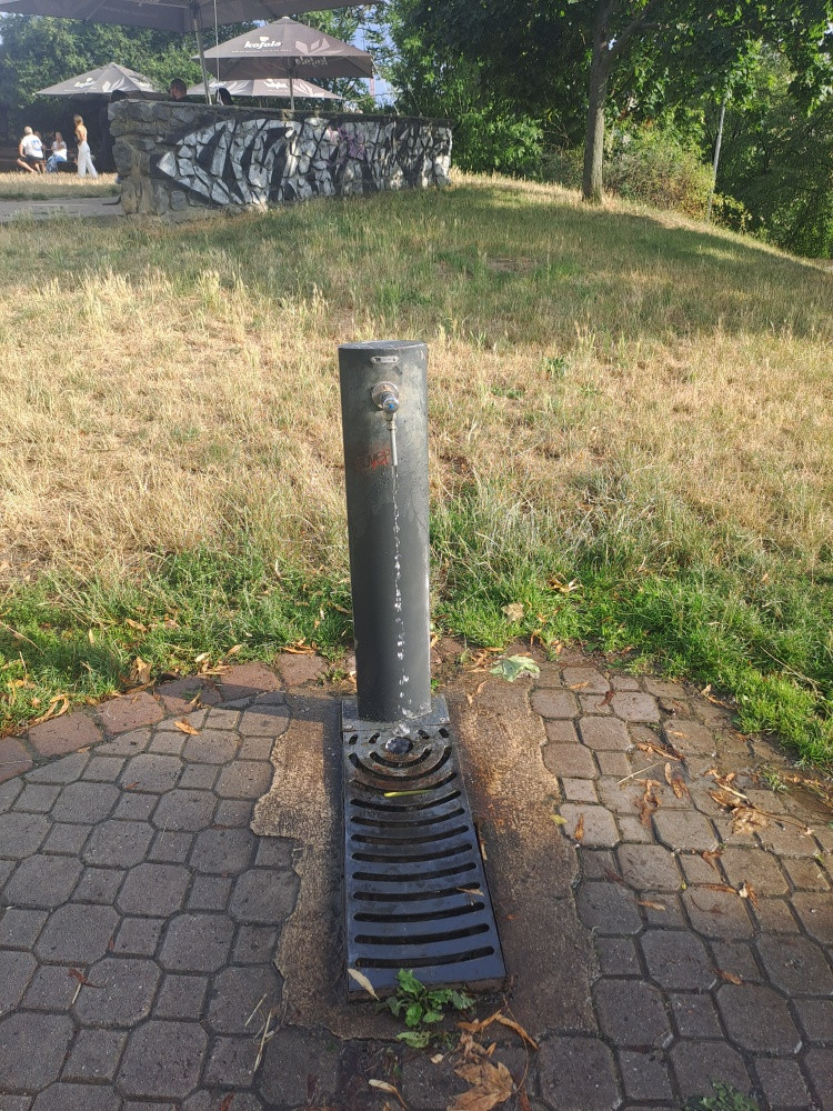 Pokažený kohoutek na pítku, po stisknutí voda neustále teče, je nutné jej ručne vytáhnout ven, což nikdo nedělá.