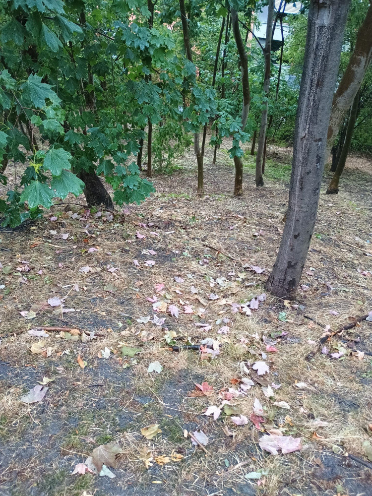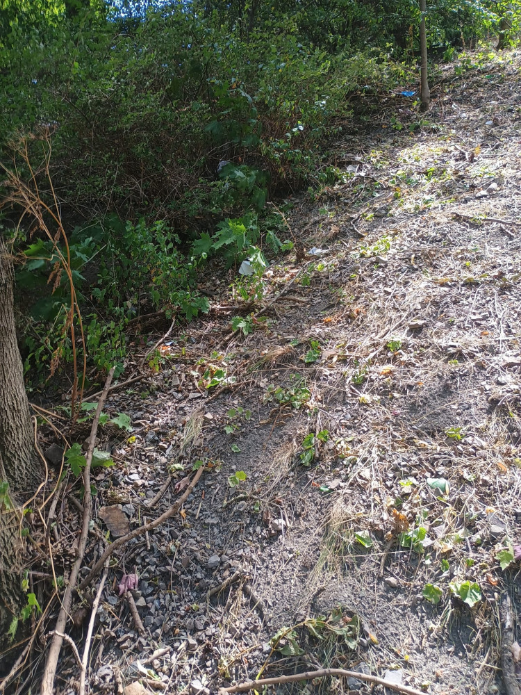 Nepořádek, možná. vznikající skládka - Stráň pod cestou k Parukářce , zhruba mezi domy Jeseniova 26 a 22.