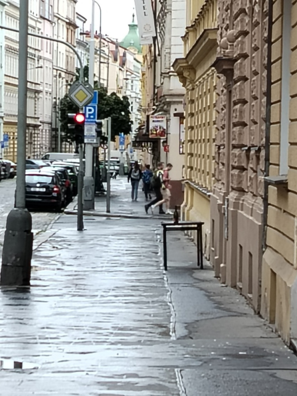 Prosime o odklizeni stolu, ktery je tu asi 4. den. Pravdepodobne uz si ho ani nikdo nevezme, protoze je jiz destem prohnuty. Zacinaji se na nem odkladat pres noc flasky s alkoholem. Moc predem diky.