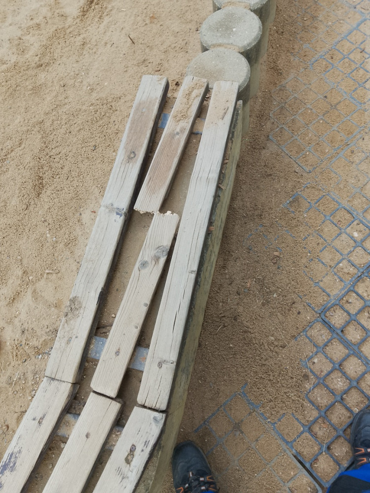 Dobrý den,na dětském hřišti Habrová je zlomený střed sezení na pískovišti