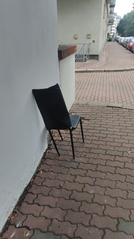 odložená židle v Kališnické ulici za bývalou pojišťovnou.