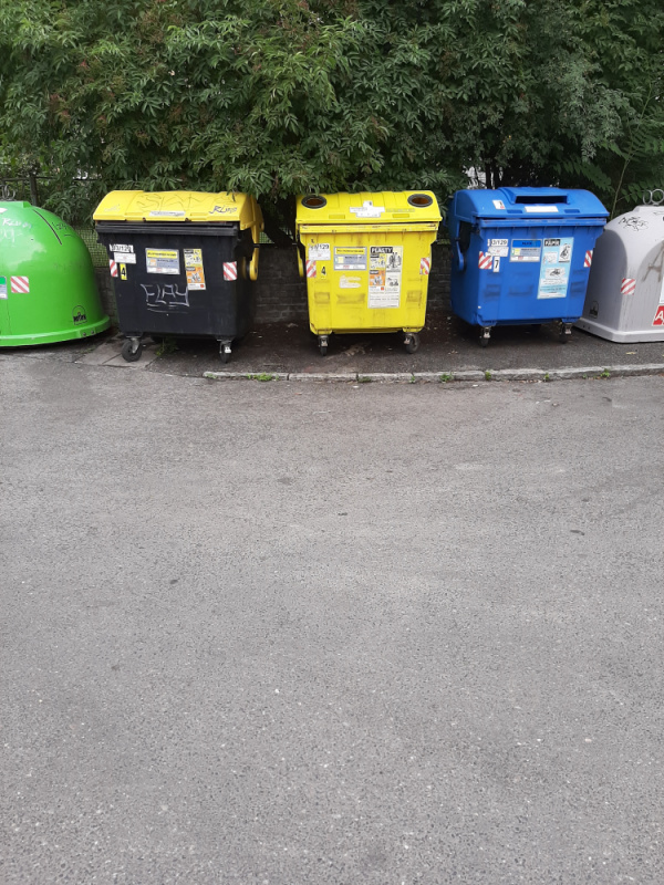 Zvlášť velký nepořádek u kontejnerů, větší než obvykle.