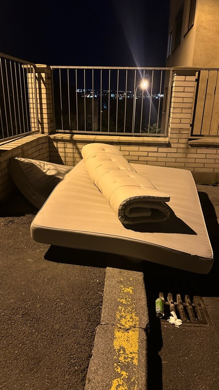Již několik dní se u schodiště válí několik matrací, bez povšimnutí….