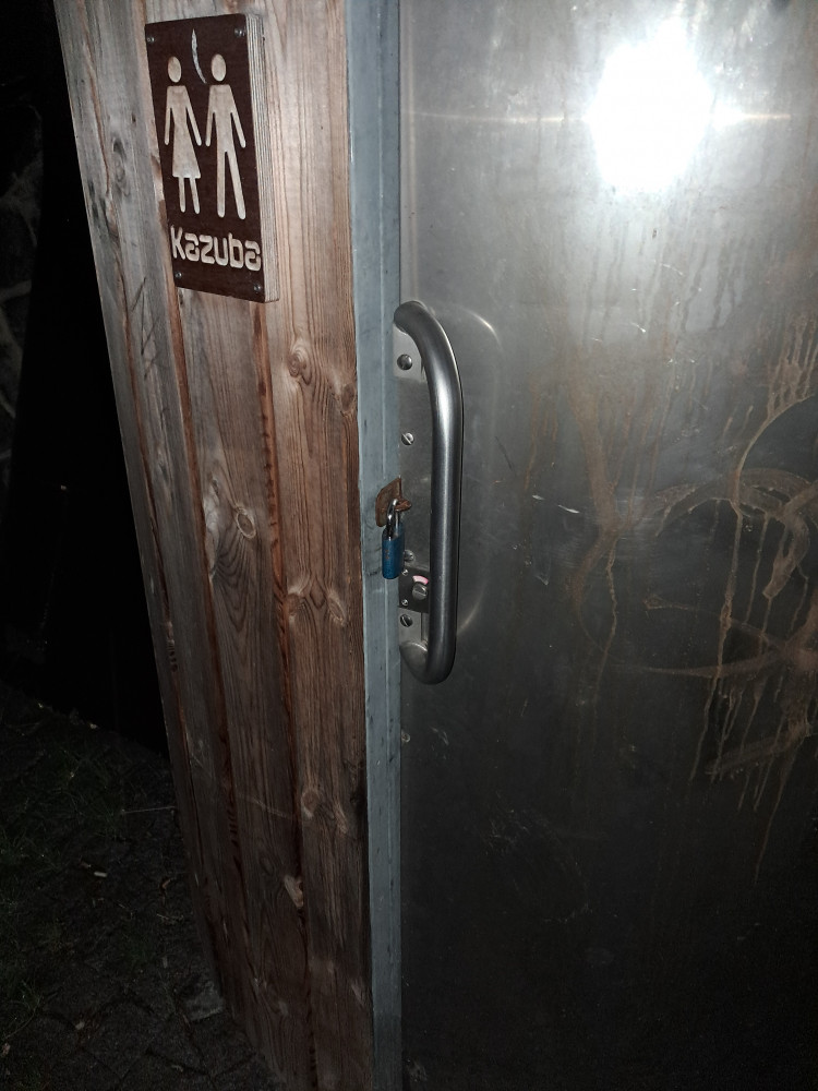 Záchod cyklostezka vitkov nejde zavřít pořádně dvere, plecharina vypacena a ohnivý plech u dveří