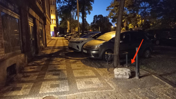 Na náměstí Jiřího z Lobkovic se na chodníku před domem č. or. 5 nachází již více než půl roku odložený velký betonový kvádr.