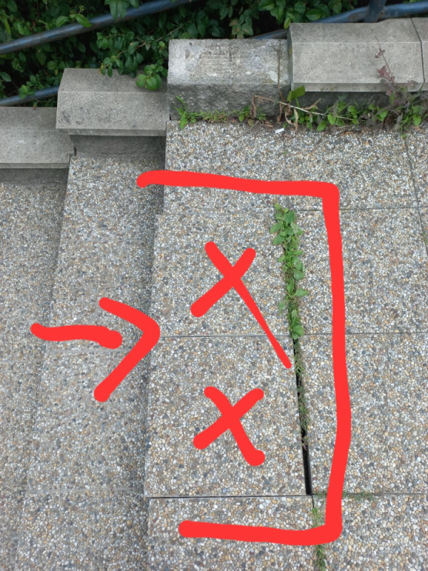 Dobry.Nevim zdali se jedna o plochu Alberta nebo mestke casti prahy 3, ale schody co k nemu vedou maji dve uvolnene dlazdice, pri slapnuti na kraj hrozi zlomeni nohy. protoze se prevrati a je to velice nebezpecne.