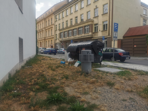 Vznik skladky. Roh Rokycanova Jeseniova. Narustajici neporadek.