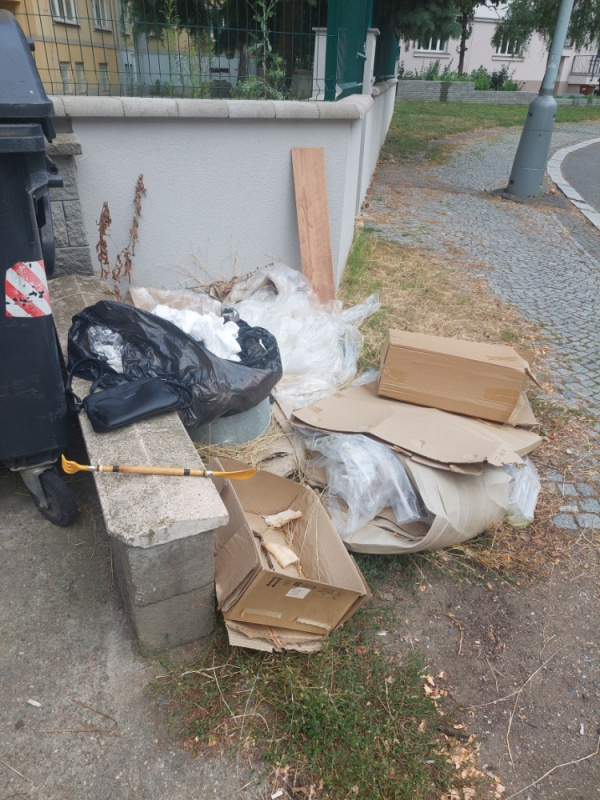 Dobrý den, moc prosíme o úklid vedle kontejnerů v ulici Ke Kapslovně, zase nám sem někdo během dne naházel všemožný bordel. Moc děkuji!