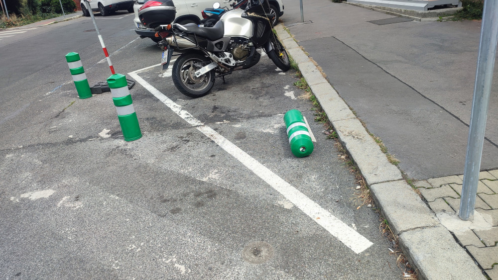 Uražená zelený kužel, který zabraňuje vjezdu vozidel.