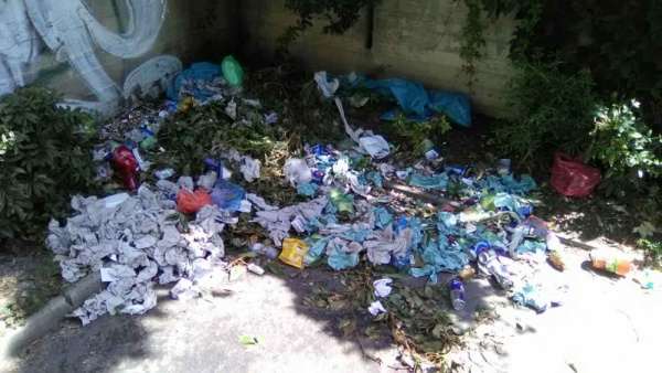 Rozházené odpadky, pytle.