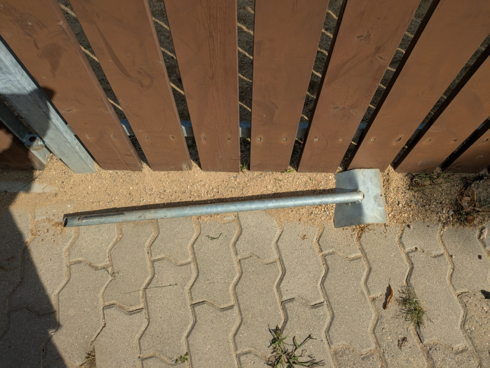 kovová tyč nalezená na hřišti, vypadá, že je odněkud urvaná, ale asi ne z hřiště.