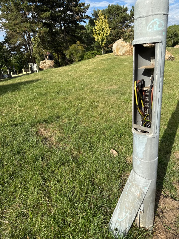 děkujeme za Váš podnět. V obdobných případech je třeba zapsat číslo lampy. Bohužel takto podle fotky a GPS souřadnic se těžko určuje o jakou jde mapu.