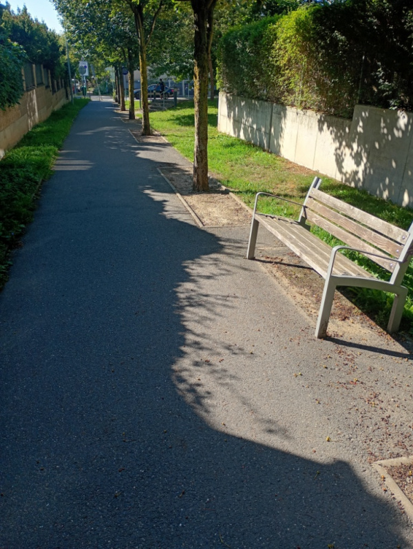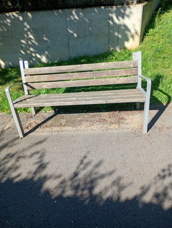 chybí horní prkno na lavičce na Vackově pod hřištěm