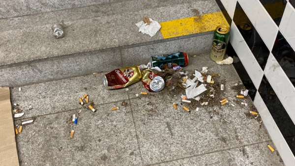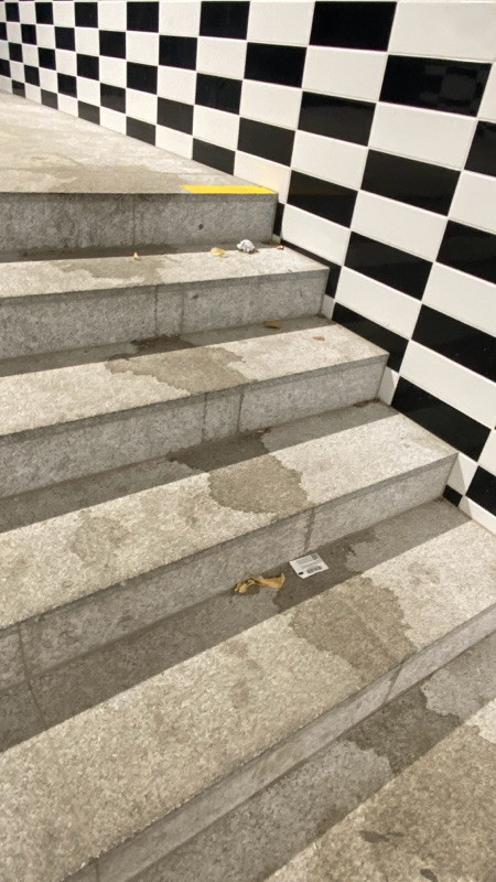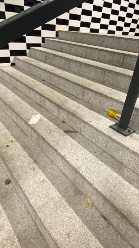 schody z Baranovy ulice na Olšanské náměstí. Každodenní příšernost. Zřejmě východní nomádi a domácí bezdomovci.