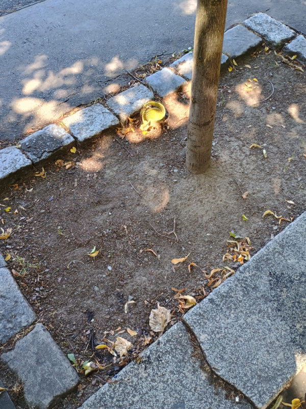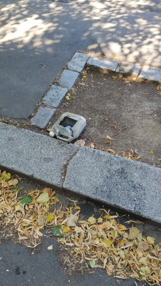 Někdo vypouštěl olej z auta a nádobu s olejem nechal u stromu.