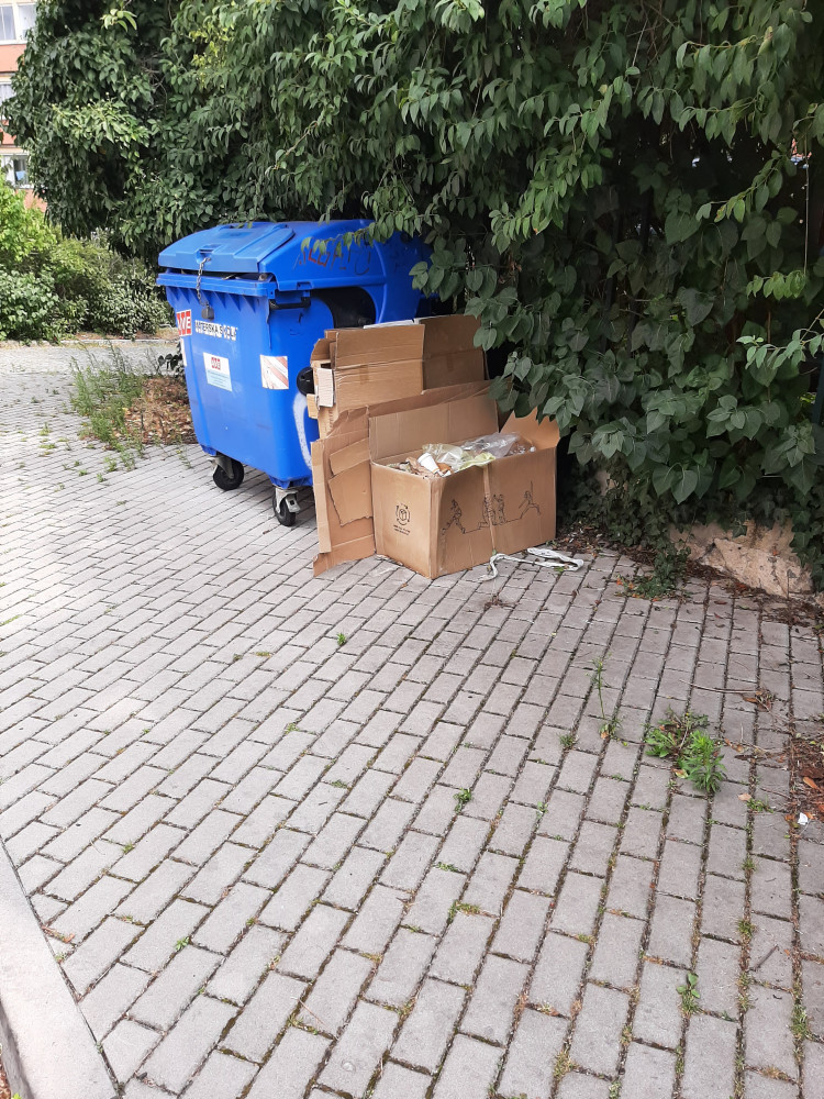 Dobrý den,chceme nahlásit nepořádek kolem kontejnerů jedná se o modrý kontejner na adrese Hartigova 240/1 jeto u mateřské školky a na proti mateřské Wandorské školky parcela se stromy a někdo rozebral skříně a opřel žebříčky o stromy jde o to že na to mohou lézt děti a může se stát ůraz toto nahlašuje předseda SVJ U jarovské vodárny Hartigova 240 Praha 3 Milan Pacák