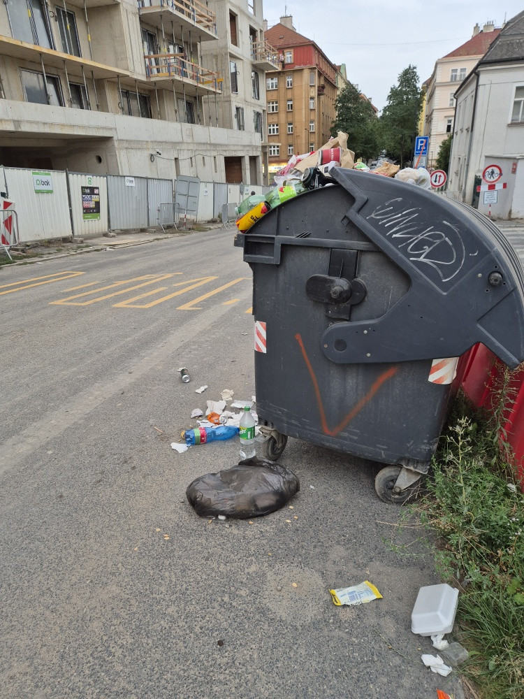 Dobrý den, děkujeme za Váš podnět. Tento problém už evidujeme. Kontejner má značku společnosti Pražské služby, ale není označena adresou domu, ke kterému patří. Už ve středu jsme požádali Pražské služby o prověření situace, příp. o odvoz nebo přemístění kontejneru. Na základě Vašeho podnětu jsme dnes společnosti Pražské služby poslali žádost znovu. Věřím, že bude brzy vyvezena, příp. přemístěna kam patří.