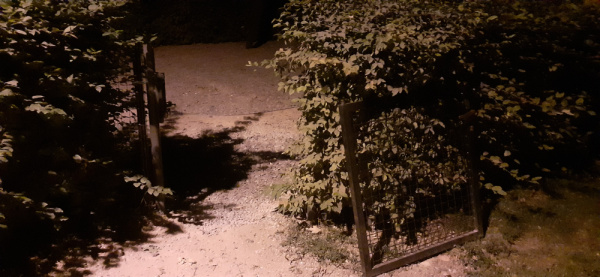 Vylomená dvířka na dětské hřiště, které je za kempem vedle sportovního areálu Pražačka. Stav z pondělního večera, možná už je vyřešeno.