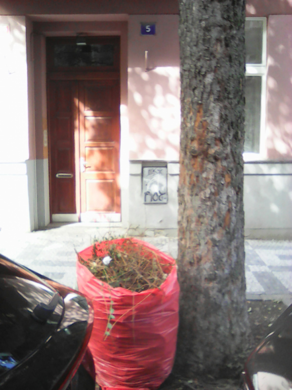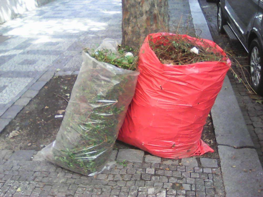 Bioodpad na chodníku. Prosím o odvoz. Děkuji.