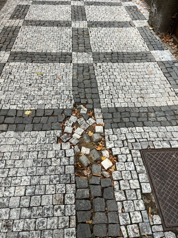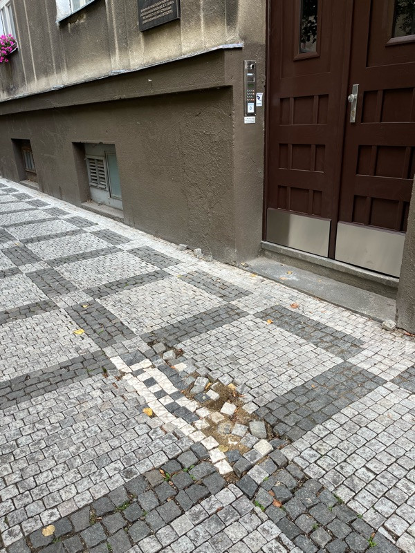 V ulici Lucemburská 23 a 25 jsou v chodníku vytrhané dlažební kostky. Jsou to 4 díry za sebou několik metrů od sebe. Už je to takhle asi 2 měsíce. Nelze projet s kočarkem ani osoby na vozíku.