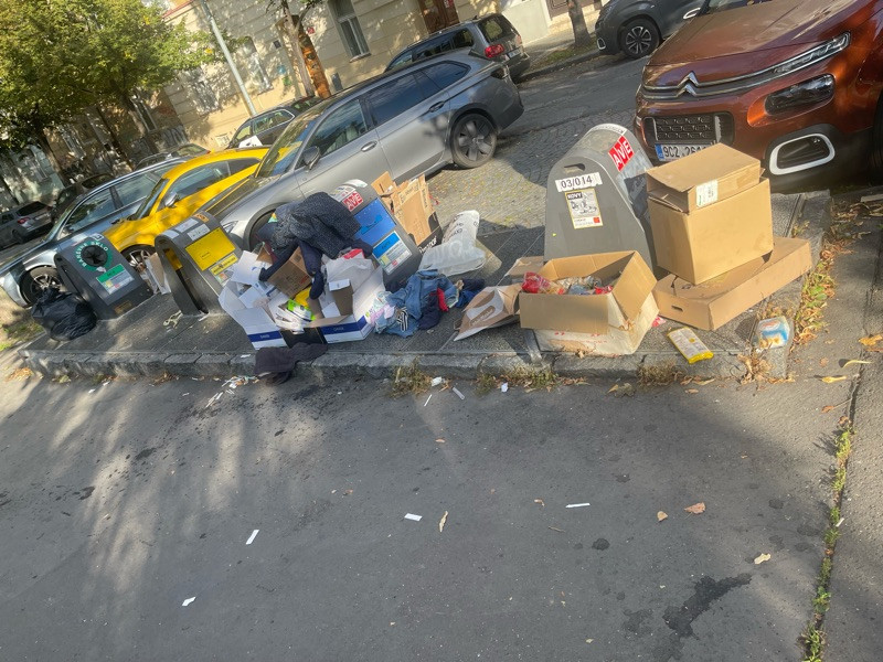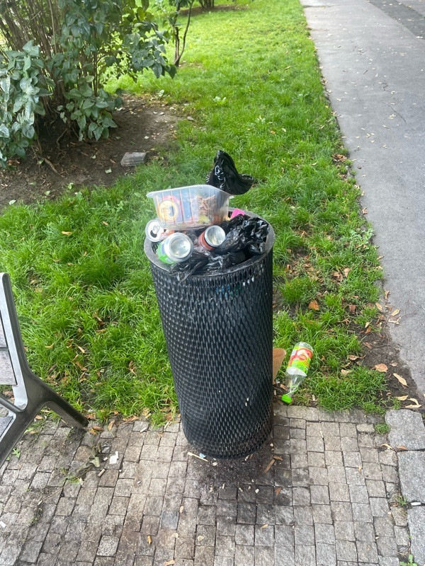 Pravidelný nepořádek u tříděného odpadu i košů v parku náměstí barikád