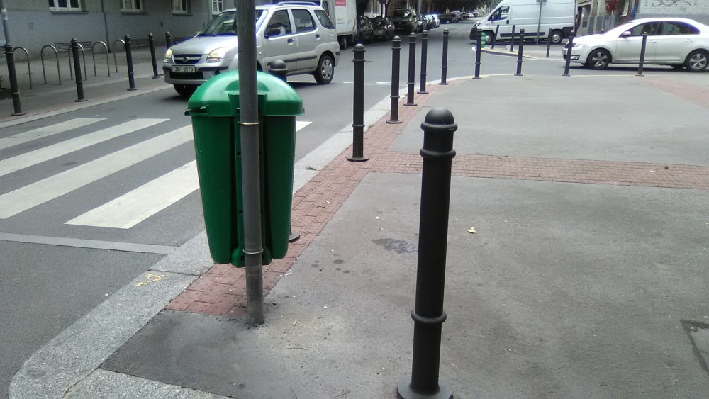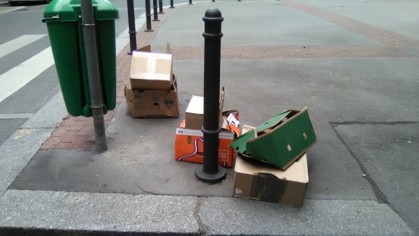 Krabice na chodníku.