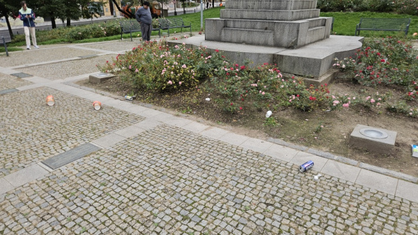 Havlíčkovo náměstí, nepořádek, odpadky všude.