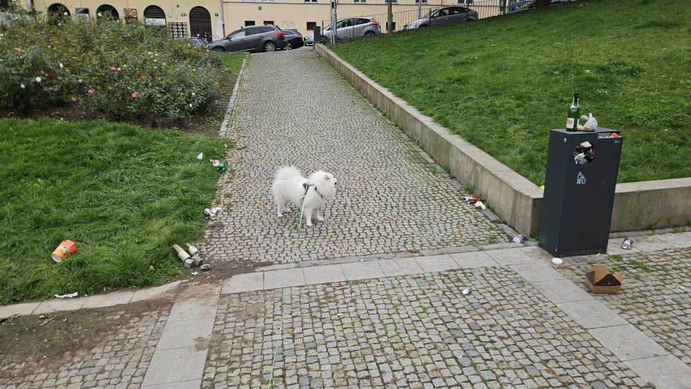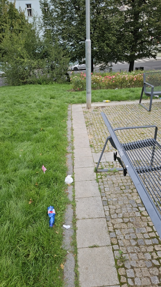děkujeme za Váš podnět. Tato plocha by měla být pravidelně uklízena každý den v dopoledních hodinách pracovníky Pražských služeb, kteří by v rámci pravidelného úklidu měli vše odstranit. Následně sami provedeme kontrolu, zda se tak skutečně stalo a případně místo poklidíme. Krásný den