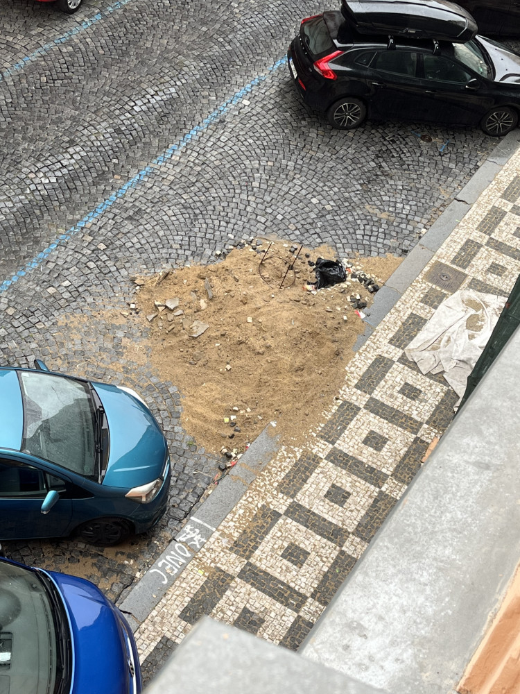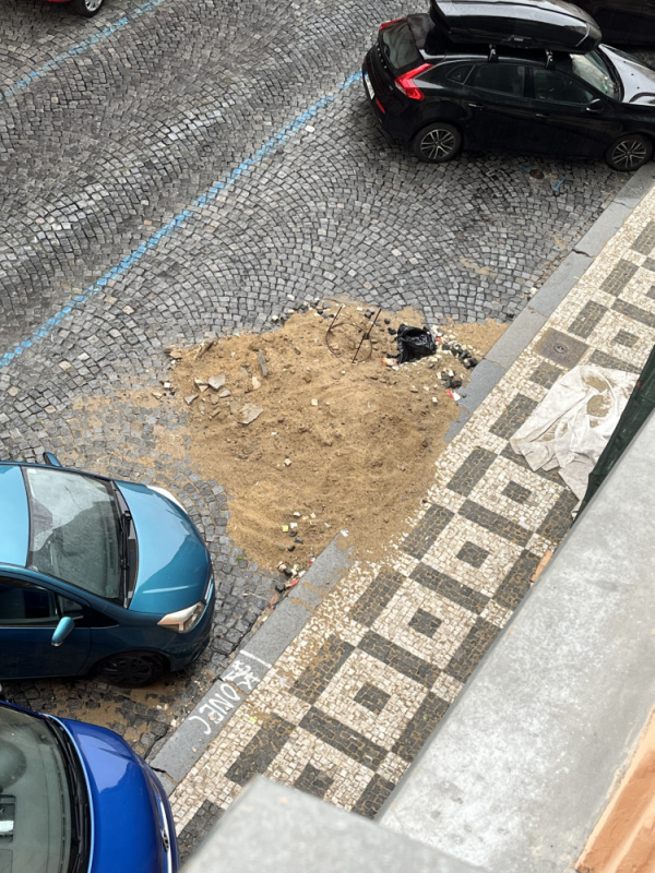 Po pracích na chodníku v Blahníkove ulici zůstala hromada písku, jsou to již nejméně dva týdny od ukončení prací a ten písek tu stale je. Zabírá parkovací místo a navíc začala se kolem toho vytvářet skládka.