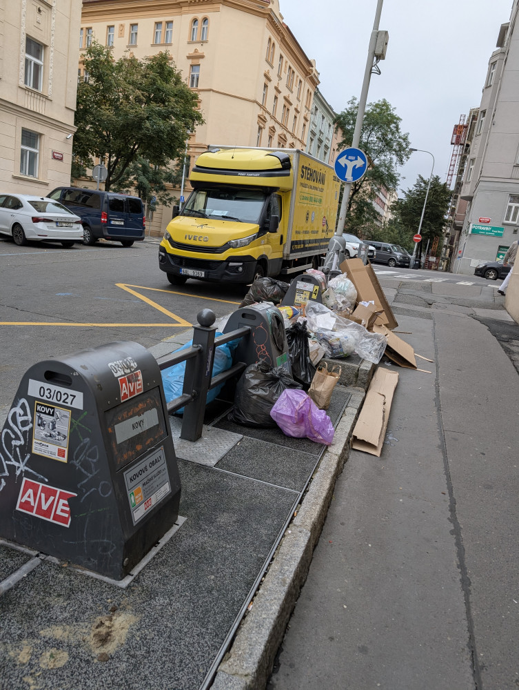 Kontejnery u. Čajkovského/Kubelíkova jsou neustále zaneřáděné.
