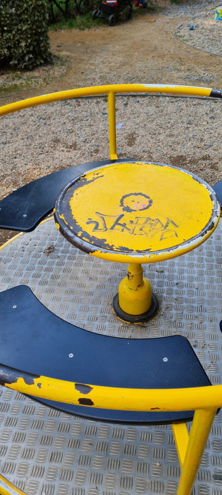 Stolek neotáčí kolotoč, chybí upevňovací prvek.