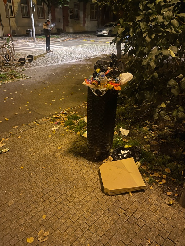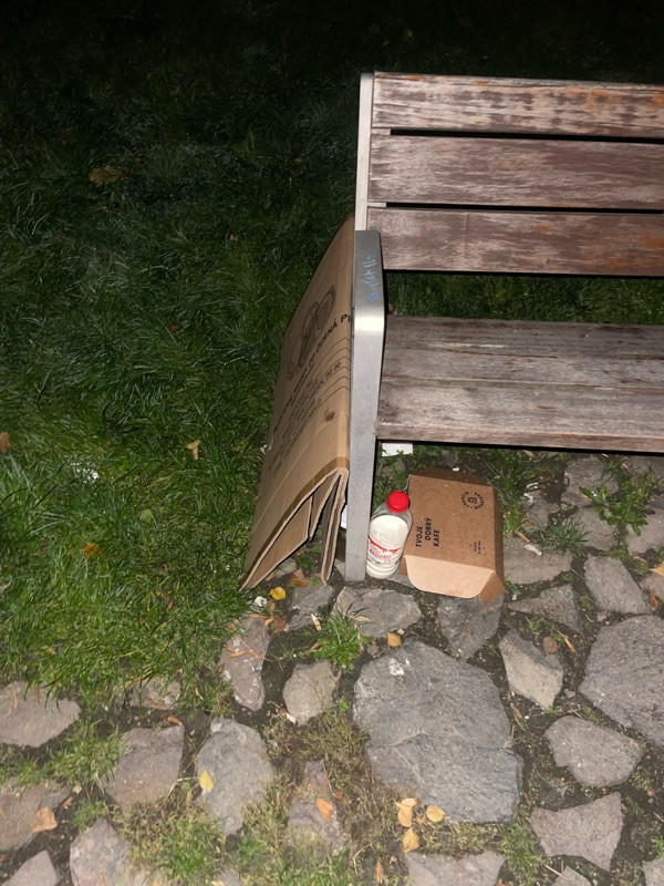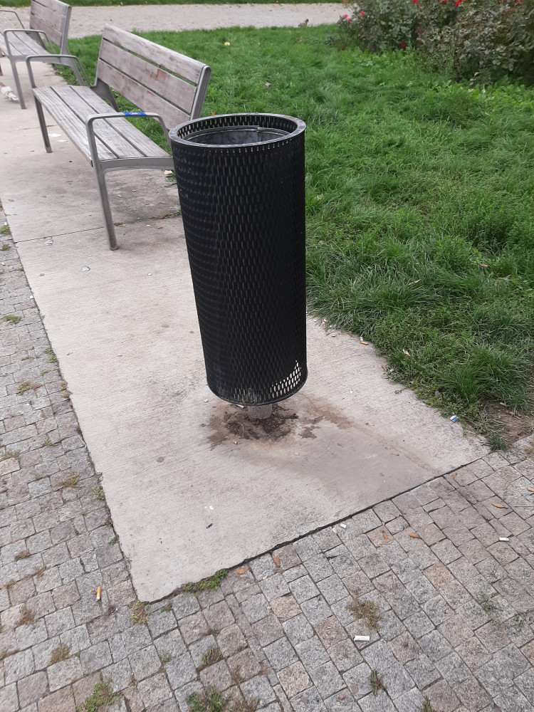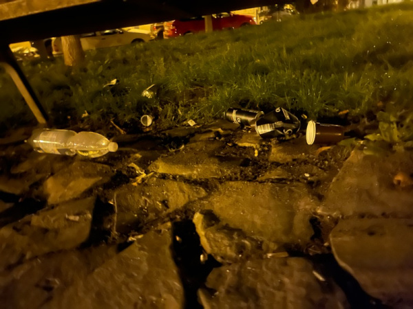 Opět nepořádek na náměstí barikád a opět u laviček kde spí bezdomovci a posedávají narkomani , 10 metrů od základní a vysoké školy .