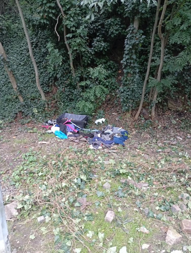 rozházeny kufr s věcmi na začátku cyklostezky z pribenicke ulice